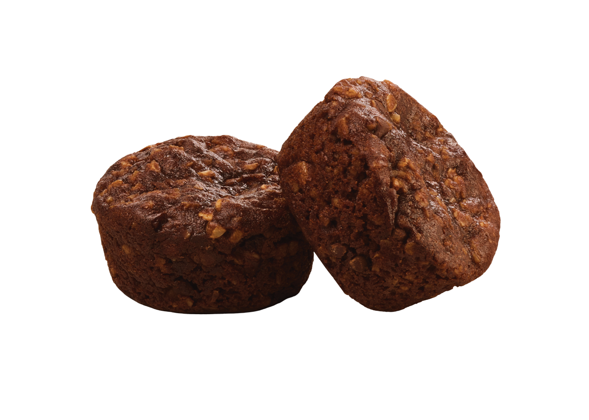 Gluten free rolled oats, Rice flour, Sugars (brown rice syrup, brown sugar, date paste), Real chocolate (sugar, unsweetened chocolate, dextrose, cocoa butter, soy lecithin, natural vanilla extract), Non-hydrogenated margarine, Canola oil, Water, Chicory root fibre, Liquid whole egg, Cocoa powder, Vegetable glycerine, Soluble vegetable fibre, Aluminum-free baking soda, Sea salt, Xanthan gum, Natural flavour, Rosemary extract.